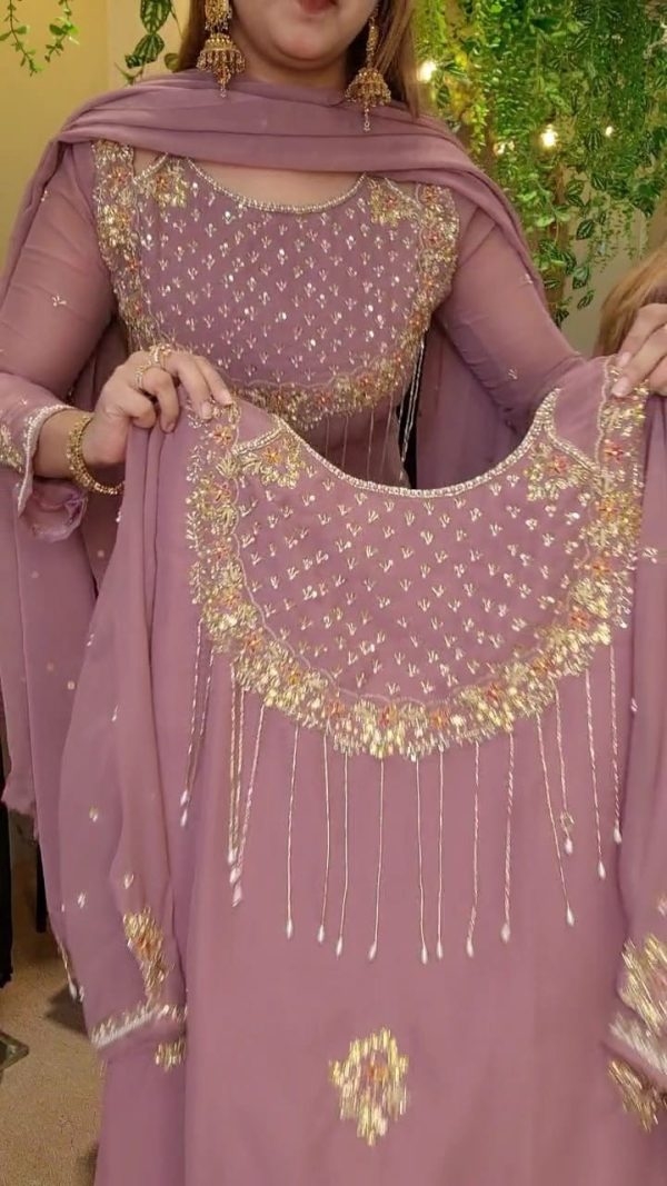এই ড্রেসে রয়েছে সুন্দর হ্যান্ড কারচুপি নেক ওয়ার্ক, যা আপনাকে দেবে একদম প্রিমিয়াম লুক।